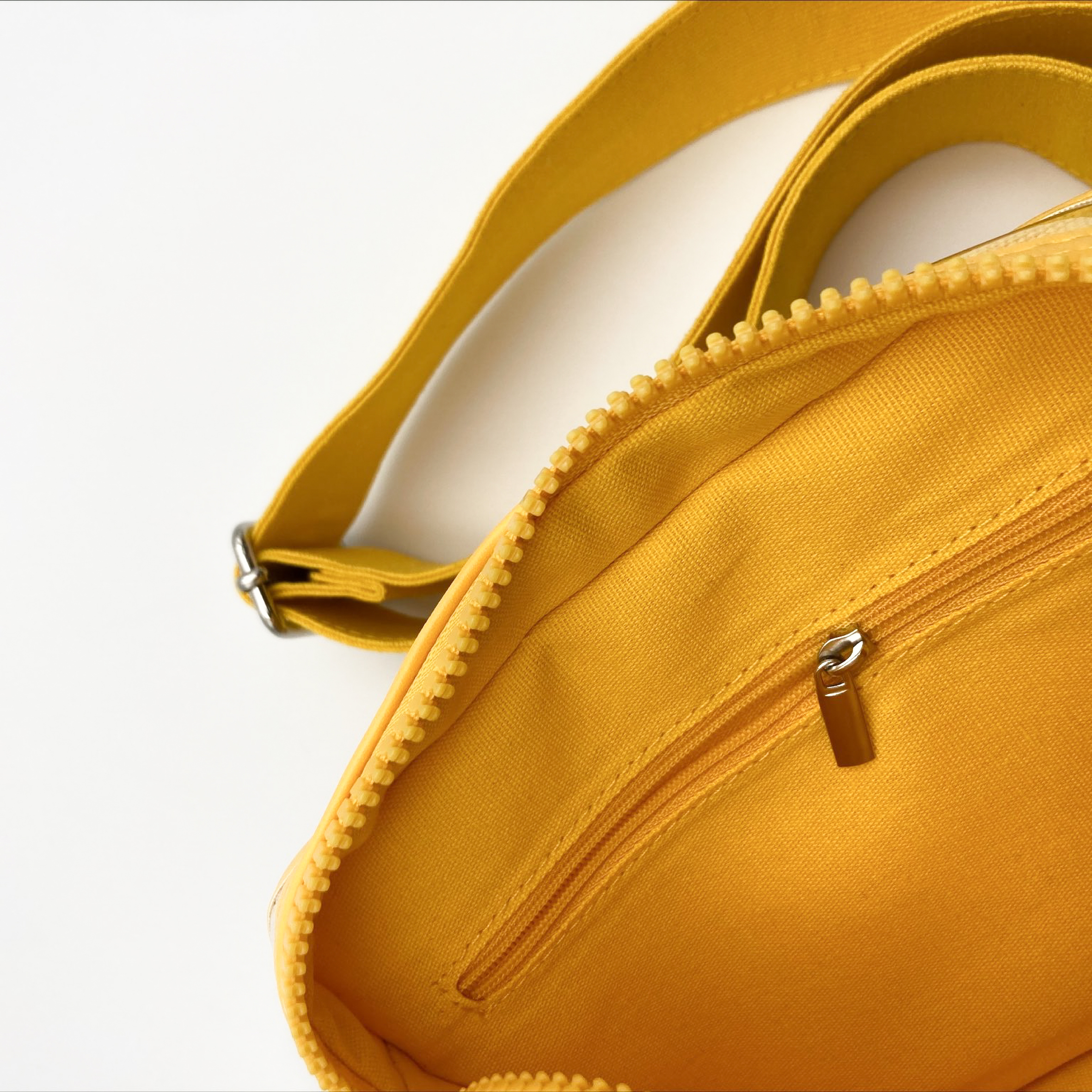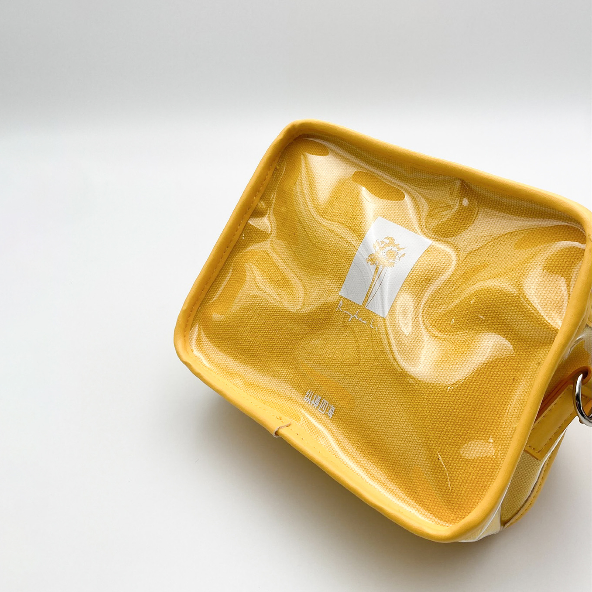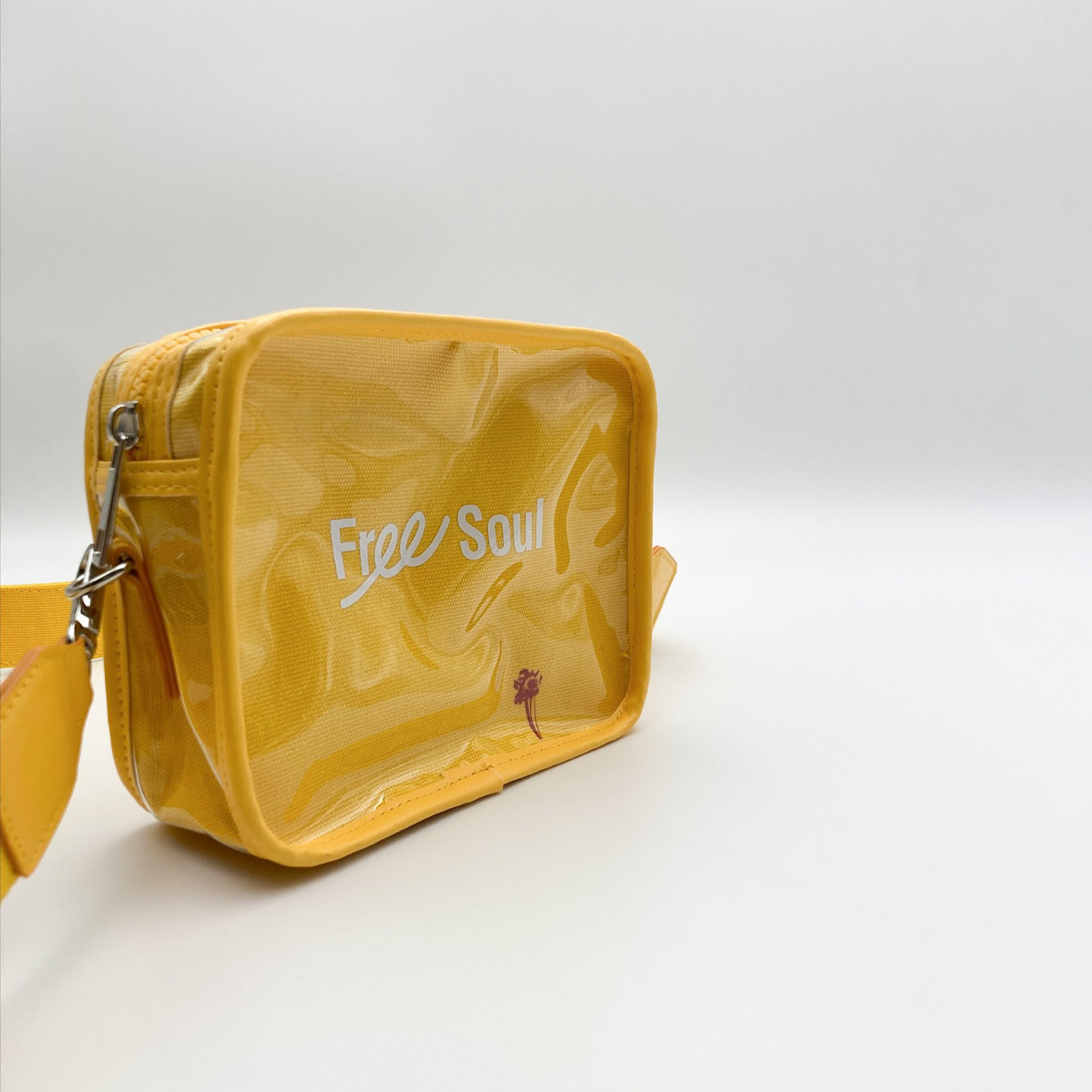 鮮豔的黃,配上顯眼的小紅花,呈現在大小合宜的行囊上,而PVC材質的反光,使其在人群中顯得格外的時尚及搶眼。
